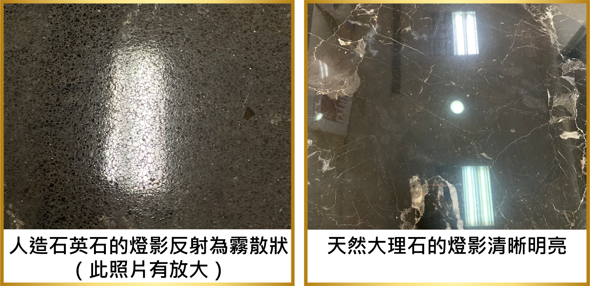 ● 光澤自然明亮、倒影清晰:「天然大理石」、「天然花崗石」