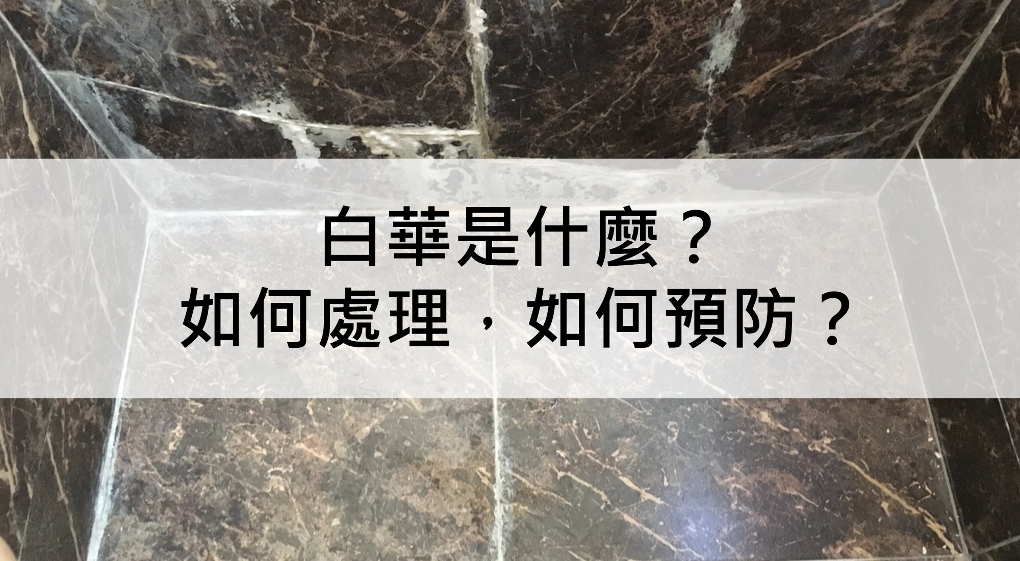 白華跟水份及濕氣有關,水份及濕氣可能包含:雨水、空氣濕氣、石材底下管線漏水、長期用濕拖把拖地、淋浴間或浴缸洗澡用水等